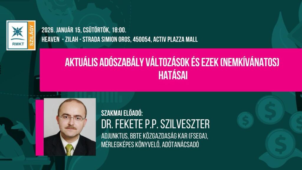 A 2026-os év meghatározó jelentőséggel bír minden vállalkozó számára, hiszen az adózási környezetben számos változás lépett és lép életbe. Ezek megértése és a rájuk való felkészülés kulcsfontosságú a vállalkozások stabil működése érdekében. Ennek jegyében szervez szakmai eseményt a Szilágy megyei RMKT, amelyre szeretettel várják a vállalkozókat és könyvelőket egyaránt.