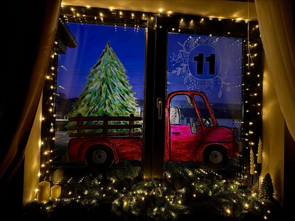 Szabó Mária kultúrreferens új szokást hozott be a falucska életébe. Minden évben december 1-től 24-ig, naponta új fény gyúl a házak ablakaiban. Először talán nem is hittük, hogy ilyen izgalmas ablakot díszíteni. Hiszen eddig is készültünk karácsonyi díszekkel, fénysorokkal.