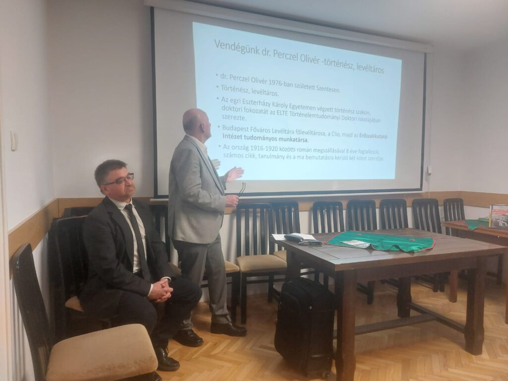 Az est meghívott előadója, Dr. Perczel Olivér történész, levéltáros részletesen ismertette kutatásainak eredményeit, külön kitérve a román katonai megszállás magyar áldozataira. Előadásában hangsúlyozta, hogy a téma feldolgozása még korántsem teljes: jelenleg már több mint ezer azonosított áldozatról áll rendelkezésre adat, ugyanakkor a román levéltári források feltárása továbbra is nehézkes.
