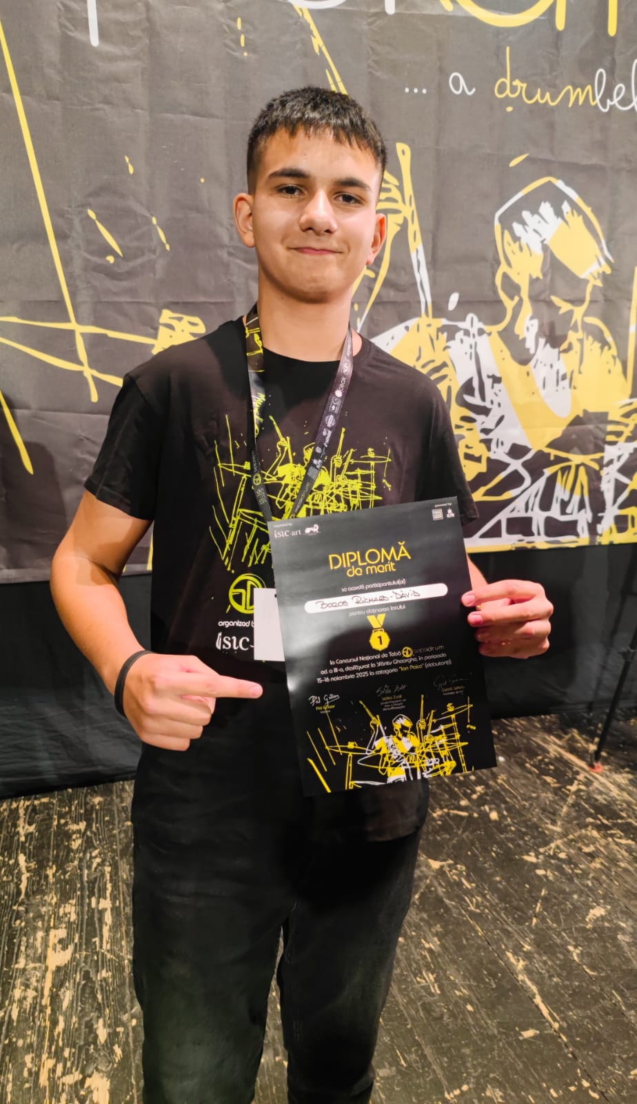 A szilágysomlyói 15 éves Boros Richárd Dávid, a Silvania Általános Iskola tanulója, első helyezést ért el a kezdők kategóriájában. Előadásával, kiemelkedő tehetségével, pontos ritmusérzékével és magabiztos színpadi jelenlétével lenyűgözte a neves szakmai zsűrit. A fiatal tehetséget édesapja, Boros Roly készítette fel.