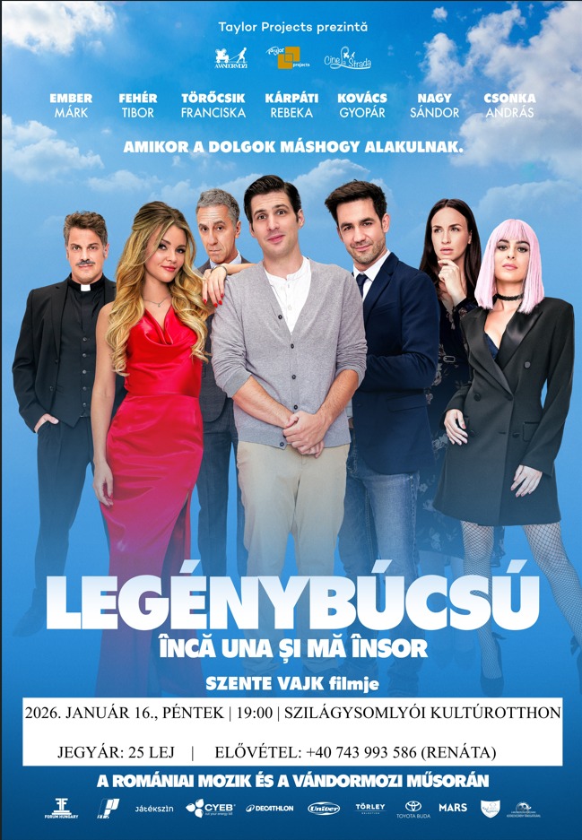 Különleges kulturális eseménynek ad otthont január közepén Szilágysomlyó: a Vándormozi és a szilágysomlyói RMDSZ szervezésében premier vetítésre kerül Szente Vajk legújabb filmje, a Legénybúcsú. A magyar filmvígjátékot 2026. január 16-án, pénteken 19 órától láthatja a közönség a Szilágysomlyói Kultúrotthonban.